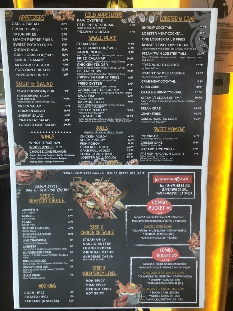 Introducing the menu at Supreme Crab, a popular seafood buffet in San Francisco, offers a wide range of appetizers including Cajun Potstickers, Popcorn Shrimp with Fries, and Cajun Edamame. Their Combo Bucket Deals are great for sharing, with options like Combo Bucket #3 featuring Dungeness crab, shrimp, clams, crawfish, and sausages. Finish your meal with a classic Cheese Cake dessert. The customer reviews rave about the delicious seafood options, generous portions, and vibrant atmosphere of the restaurant. Overall, Supreme Crab is a must-visit spot for seafood lovers seeking flavorful dishes and a unique dining experience.